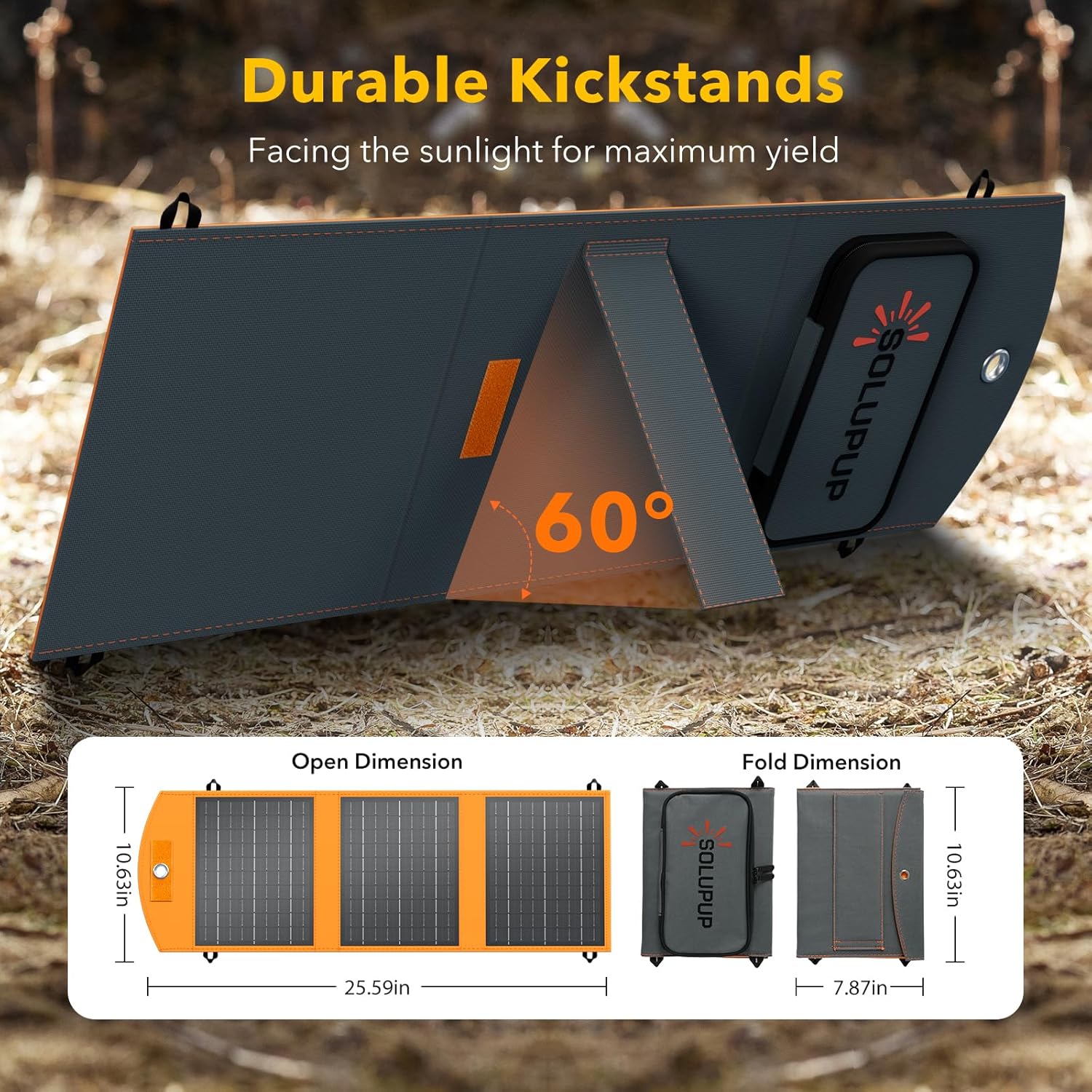 | Included Components | DC conversion ports (DC5521-8020,DC5521-7909,DC5521-35135,DC5521-5525), MC4 adapter cable to DC5521,Anderson,XT60, MC4 adapter power box (1*SAE,2*USB-A,2*TYPE-C), SOLUPUP 200W solar panel, User manual |