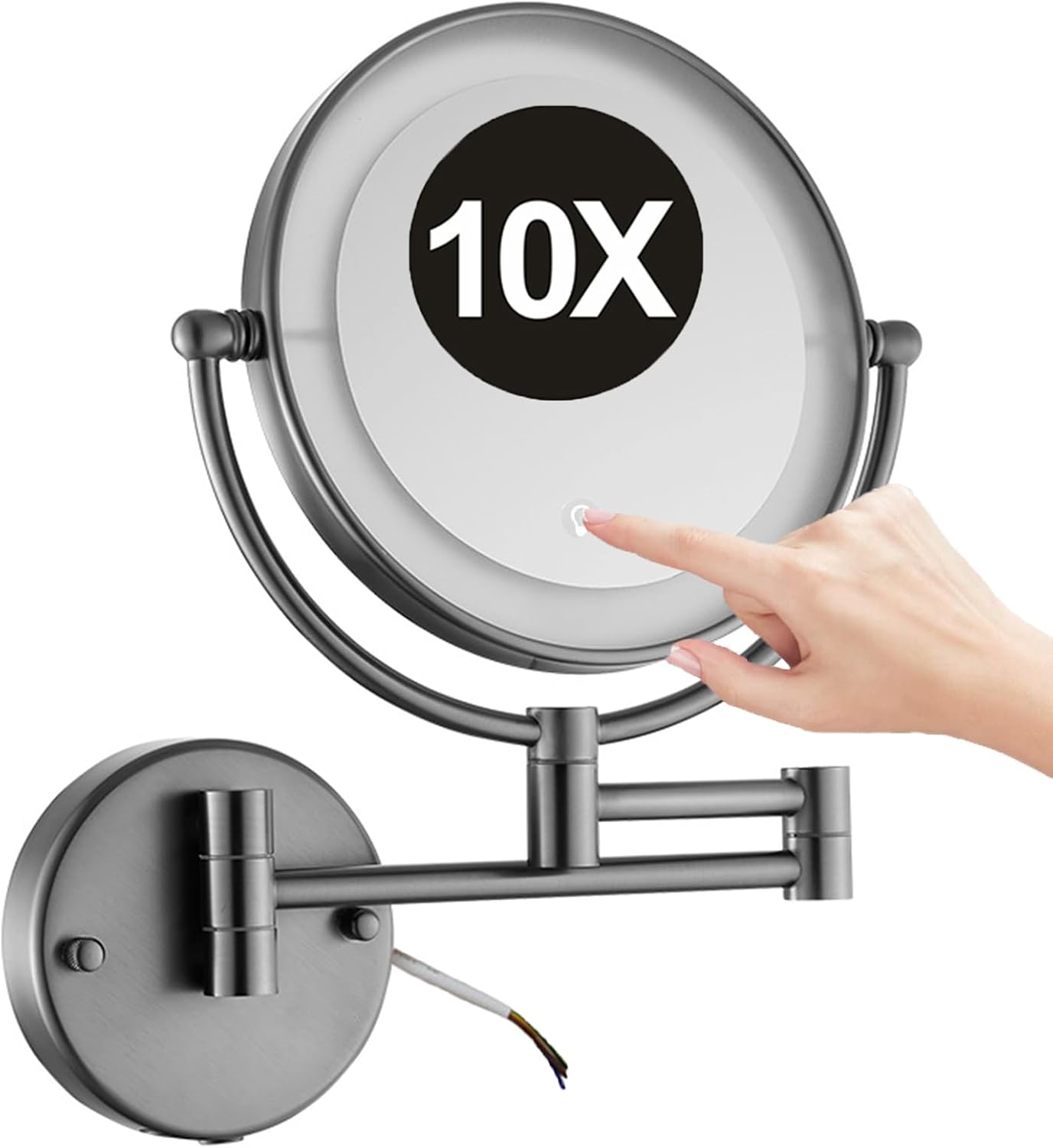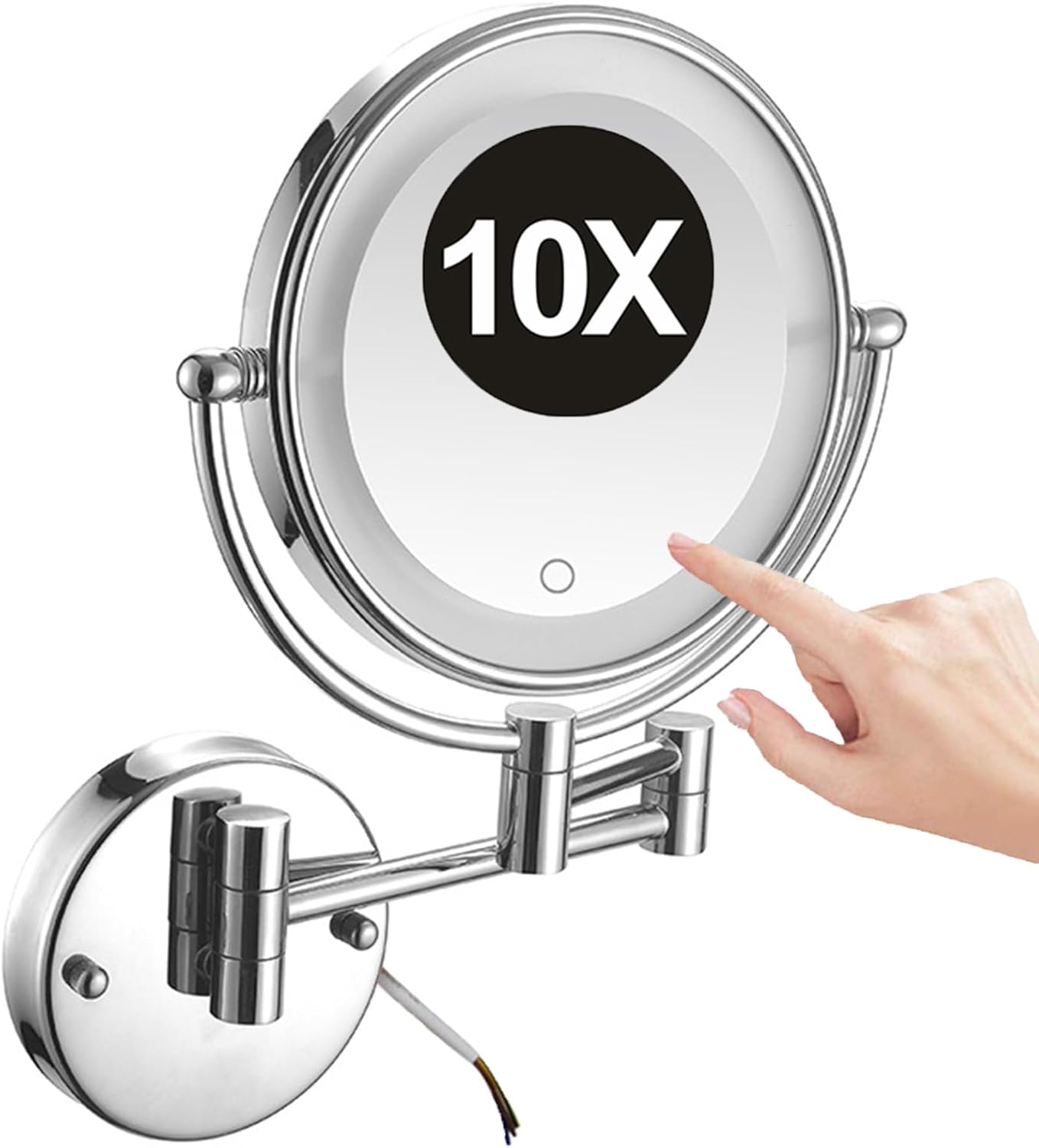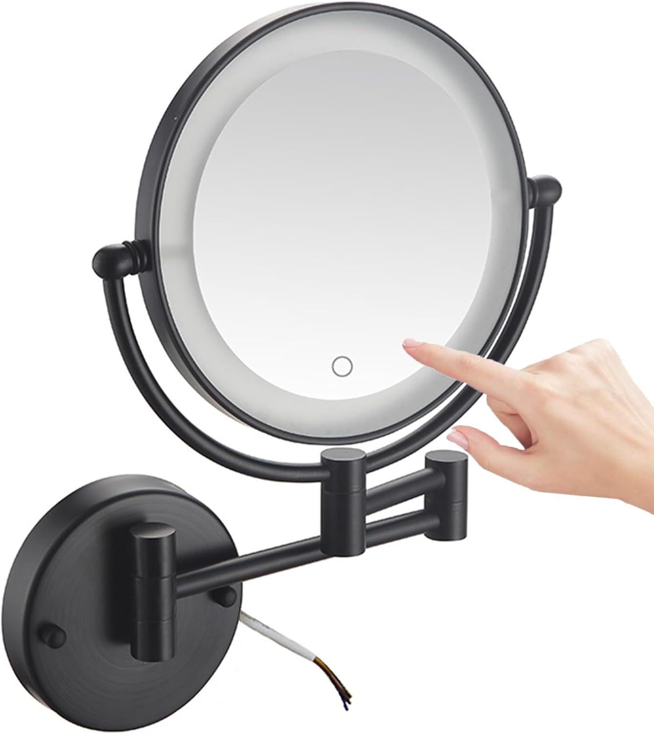 Washcadg specialize in vanity mirrors, we care about the quality of mirrors. We always choose good metal brackets and glass mirrors, and adopt advanced multi-layer electroplating anti-rust technology to make our vanity mirrors rust-free and anti-corrosionIf you need a power plug for power supply, please let us know before paymentItem Type: LED Lighted Makeup MirrorType: Adjustable Wall Mounted Shaving Vanity MirrorColor: Silver, Black, Brass, Rose gold, Brushed gold, Gold, Brushed Nickel, Gun GrayInput voltage: AC: 85~265VLighted: Natural LightMaterial: Brass + Stainless steel + Glass360 Degree Rotated Mirror: Easy to adjust the angle you wantDouble sided: Normal 1X and 3X/5X/7X/10X MagnifyingShape: RoundMirror Size: 8 Inches (20cm)Telescopic Range: 30cm to 45cmSwitch: Screen touch switch, stepless dimmingPower Supply Mode: Hard-WiredInstallation Method: Wall-MountedLED Quantity: 42 PCSLED Life: 10,000 HoursLight Luminance: 6,500KWarm reminder:The project may be slightly different from the image due to the display of lights and screens.To get a real image, avoid picture distortion and inversion, the distance between you and the mirror should not exceed:30cm(3X); 20cm(5X); 15cm(7X); 10cm(10X)