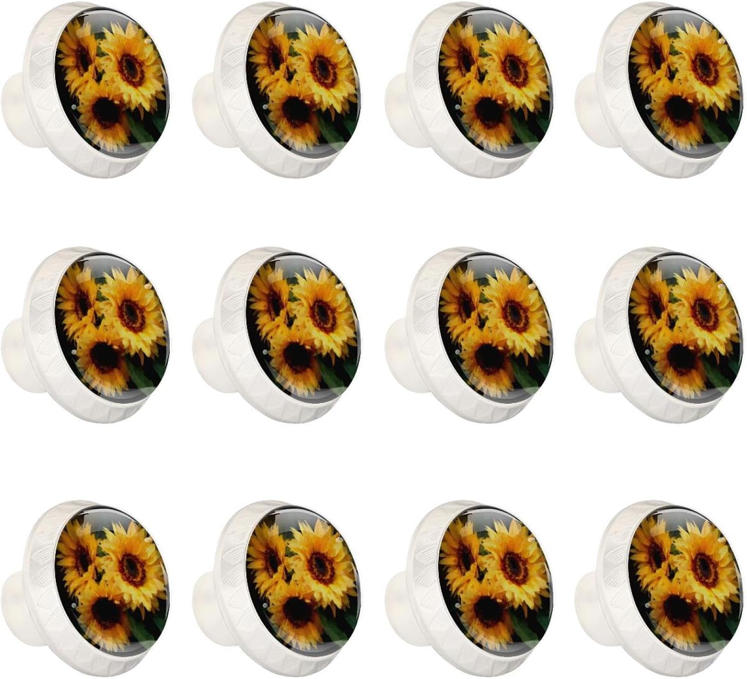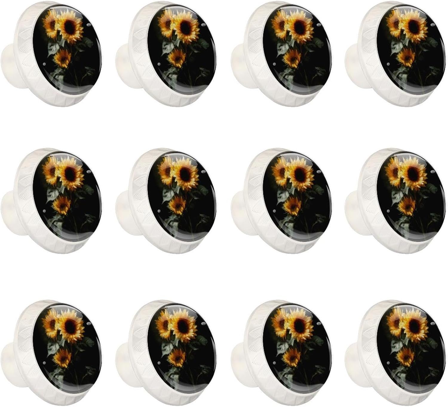 Black Base Sunflower Flowers Dark (1) Pattern Cabinet Knobs, Drawer Pulls for Dresser Cupboard Wardrobe Home Decoration