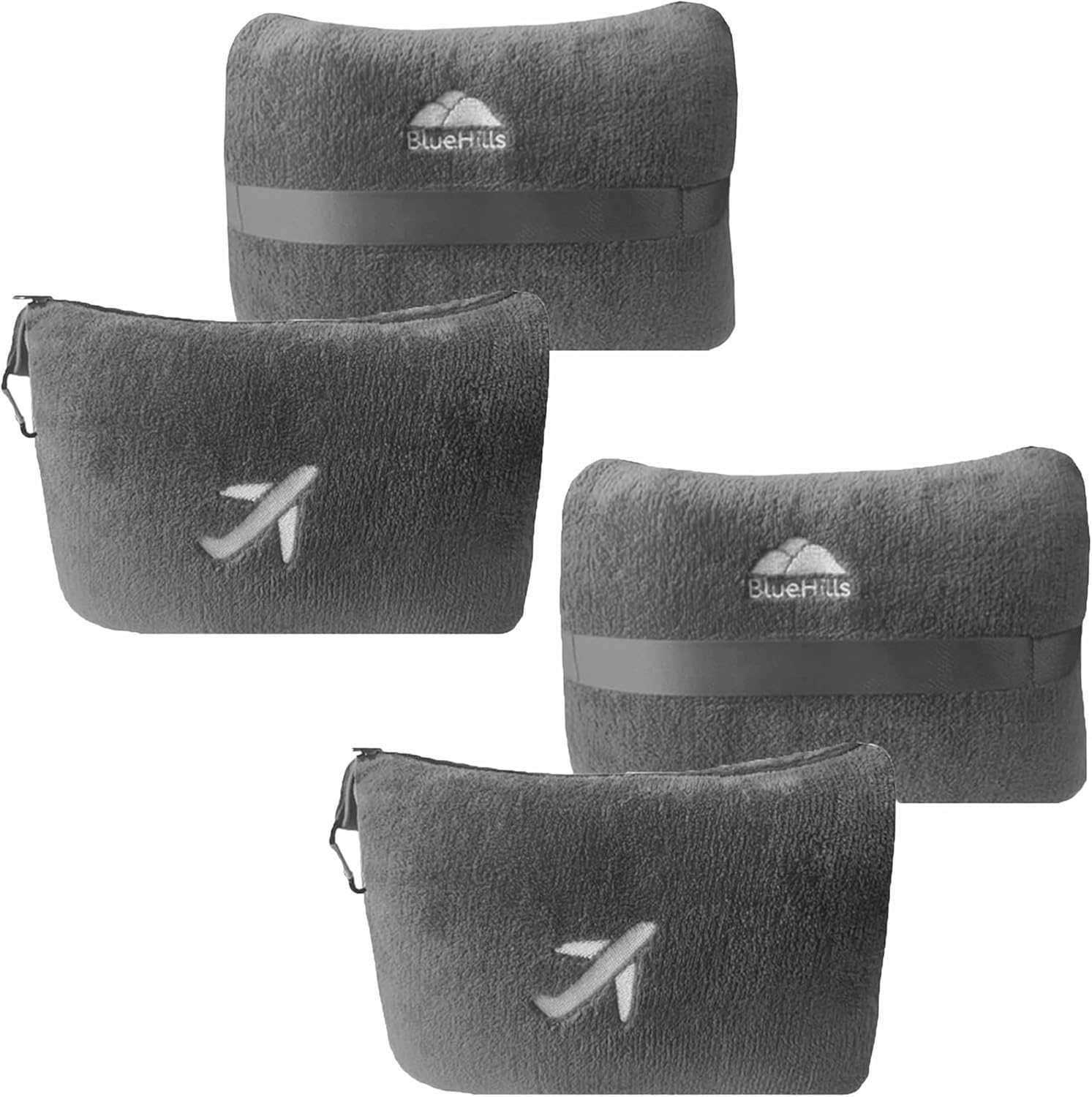 BlueHills Premium 2 Pack Travel Blanket Pillow in Mini Soft Case Plush Airplane Blanket in Bag Compact Luggage Belt Plane Pillows Gifts Long Flight Blankets Essentials Gray M21