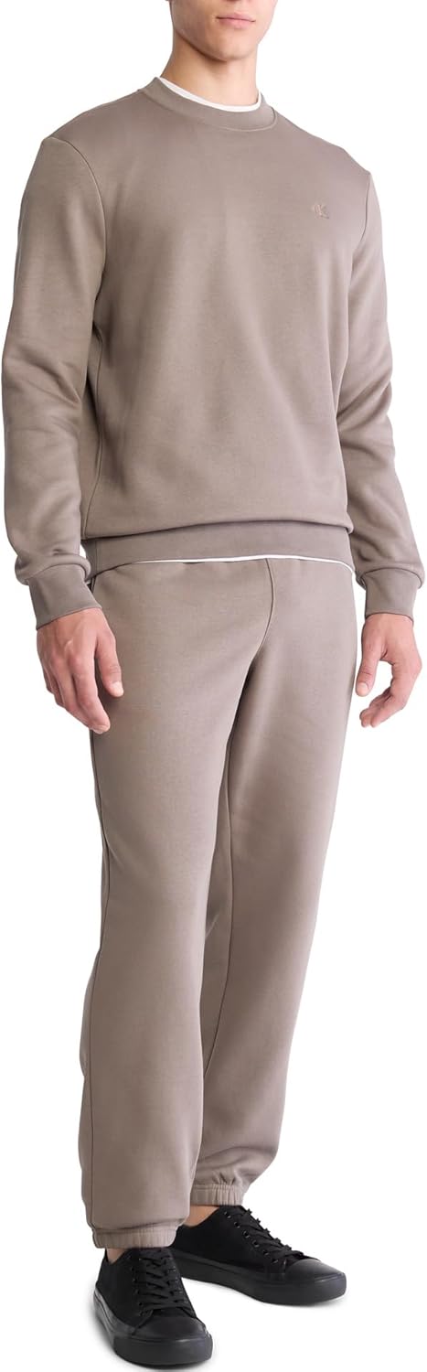 Designed with a solid body and a retro-inspired monogram logo, these updated Calvin Klein sweatpants feature a plush cotton knit fleece blend for premium, all-day comfort. Finished with a drawstring waistband and pull-on styling, angled front slip pockets, straight legs and banded ankles. An on-trend look, perfect to complement Calvin Klein wovens, polo shirts and more.
