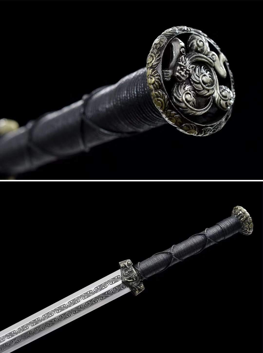 Product Overview ThisLOONGSWORD Chibi Han Jianis a compact straight sword inspired by traditional Chinese Han-dynasty design. Hand-forged inLongquan, Zhejiang, it reflects centuries-old Chinese sword-making heritage combined with modern craftsmanship standards. Its balanced proportions and refined details make it ideal forcollection, display, and non-contact martial arts practice. Materials & Craftsmanship The blade is forged fromhigh carbon steeland finished with a subtle etched pattern that enhances visual character without compromising structural integrity. Afull tang constructionruns through the handle, contributing to balance and durability. The scabbard is made from solid wood with a painted finish, while the handle is wrapped with rope for traditional grip aesthetics. Product Specifications Blade Material:High carbon steel, etched pattern Sword Type:Hand-forged, full tang Overall Length:32 in / 83 cm Blade Length:21 in / 54 cm Handle Length:8.6 in / 22 cm Blade Width:1.57 in / 4 cm Package Weight:Approx. 2 kg Scabbard:Solid wood with painted finish Handle:Wood wrapped with rope Fittings:Alloy material Origin:Longquan, Zhejiang, China Accessories:Cotton sword bag (wood stand not included) Usage & Care This sword is intended fordisplay, collection, cultural appreciation, and martial arts practice props. It is not designed for combat or impact use. Wipe the blade lightly after handling and store it in a dry environment to preserve its finish. LOONGSWORD Brand Story LOONGSWORD is dedicated to preserving the traditional art of Chinese sword forging. Rooted in Longquan’s renowned craftsmanship heritage, each piece reflects respect for history, culture, and refined martial aesthetics—bringing the spirit of the Chinese Jian into the modern world.