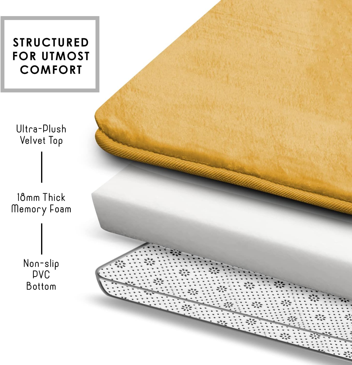 • Super Quality and Comfort: This super soft and ultra-comfortable bath rug feels super comfortable when your feet steps on it, made of super soft Velvet Fleece, filled with soft memory foam cushioning.
