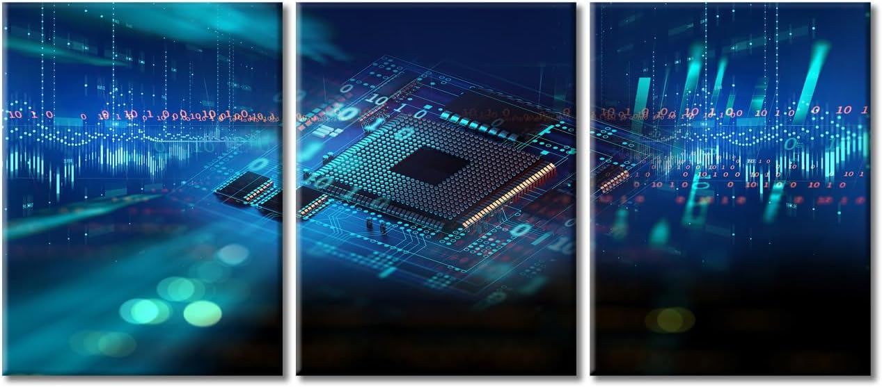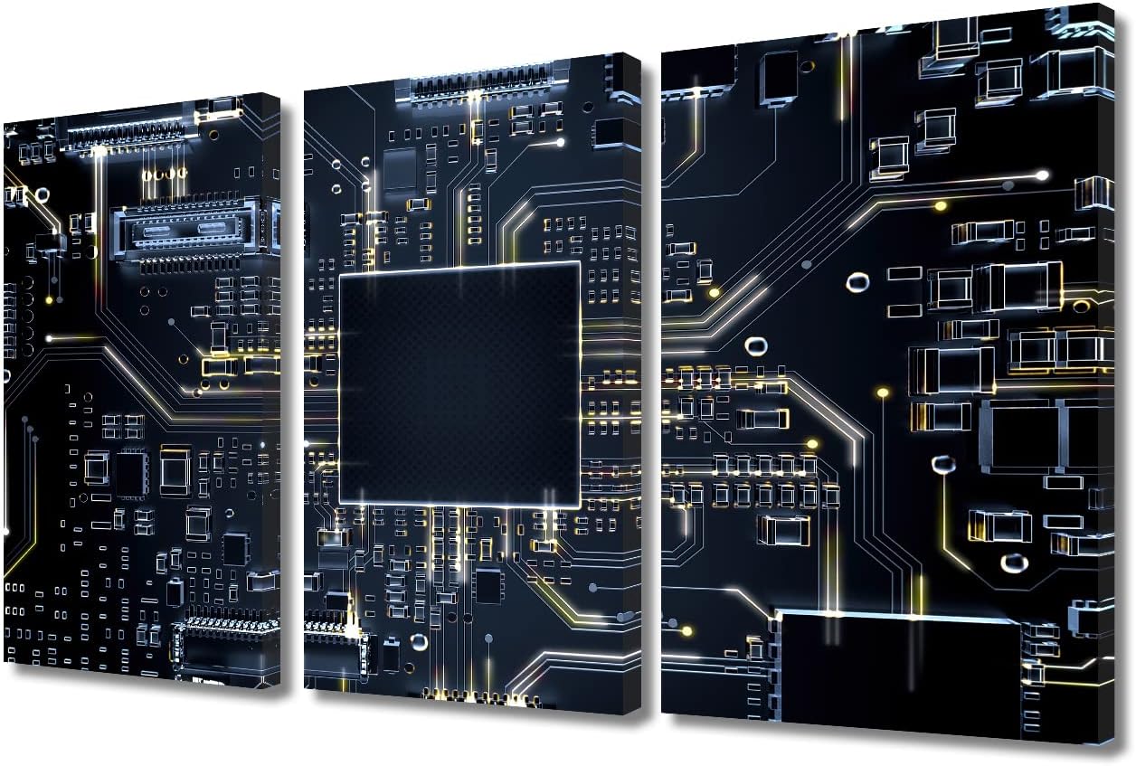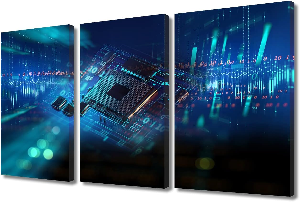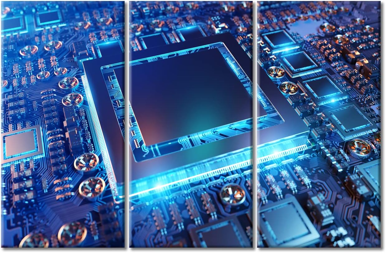 CPU Concept Canvas Wall Art Integrated Communication Processor Posters and Prints Bathroom Decor Wall Art 3 Panel Circuit Board Bedroom Poster Artwork Print on Canvas Framed Ready to Hang (36"Wx16"H)