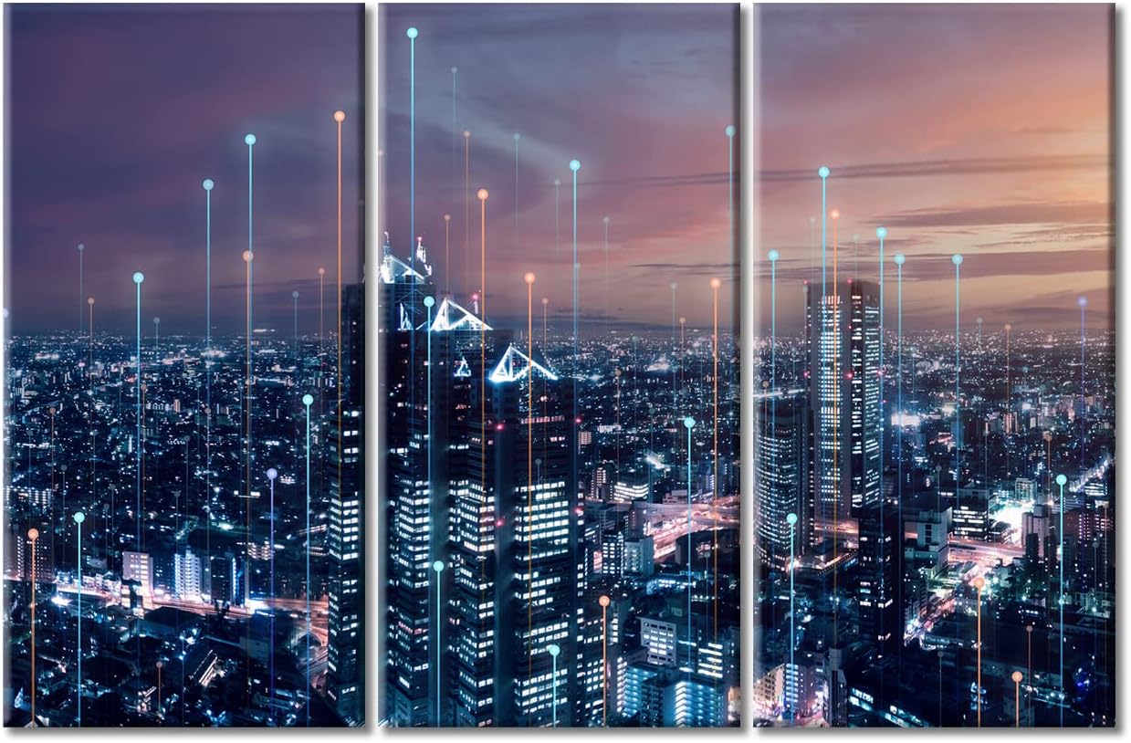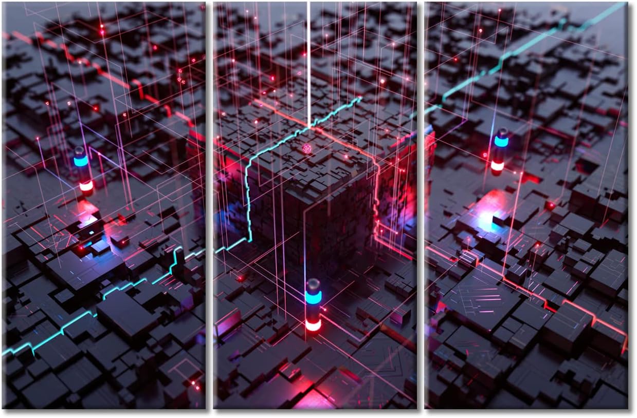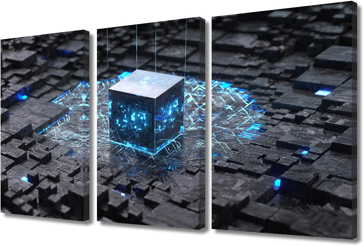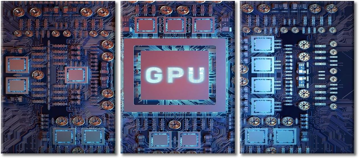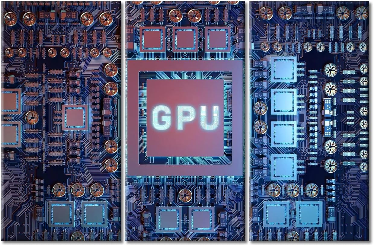CPU Concept Canvas Wall Art Integrated Communication Processor Posters and Prints Bathroom Decor Wall Art 3 Panel Circuit Board Bedroom Poster Artwork Print on Canvas Framed Ready to Hang (36"Wx16"H)