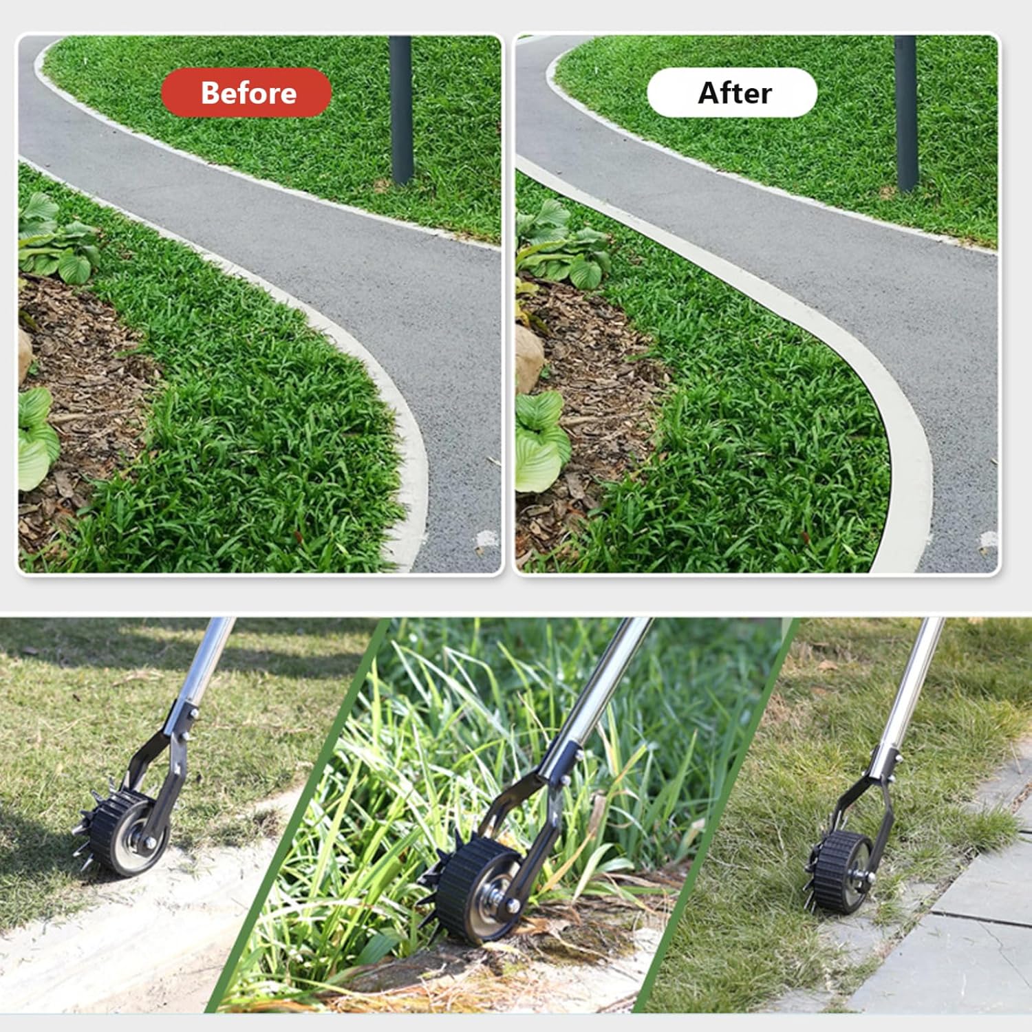 Description: Our lawn edger allows you to create clean, precise edges along sidewalks, driveways, and flower beds, giving your lawn a professional and well-manicured look. The stainless steel handle and metal shear, ensures long-lasting performance and resistance to rust and corrosion. The rotary grass edger tool features a wheel that guides the edger along the edge of your lawn, making it easy to create straight, clean edges with minimal effort. The 3-section stainless steel handle can be adjusted to your desired length, allowing you to comfortably use the edger without straining your back or arms. How to install:. ① Install the cutting head and align it with the hole. ② Insert screws. ③ Tighten the screws to fix it. ④ Turn and tighten the connecting rod. Features:. Edger Lawn Tool. -Color: As shown. -Material: Metal+Stainless steel. - Size: 3 Sections: Length 135 cm/53.15 inch. Shear Wheel: 4.5x15 cm/1.77x5.91 inch. Note: Manual measurement, please allow slight errors on size. The colors may exist slight difference due to different screens. Package Including 1 * Edger Lawn Tool