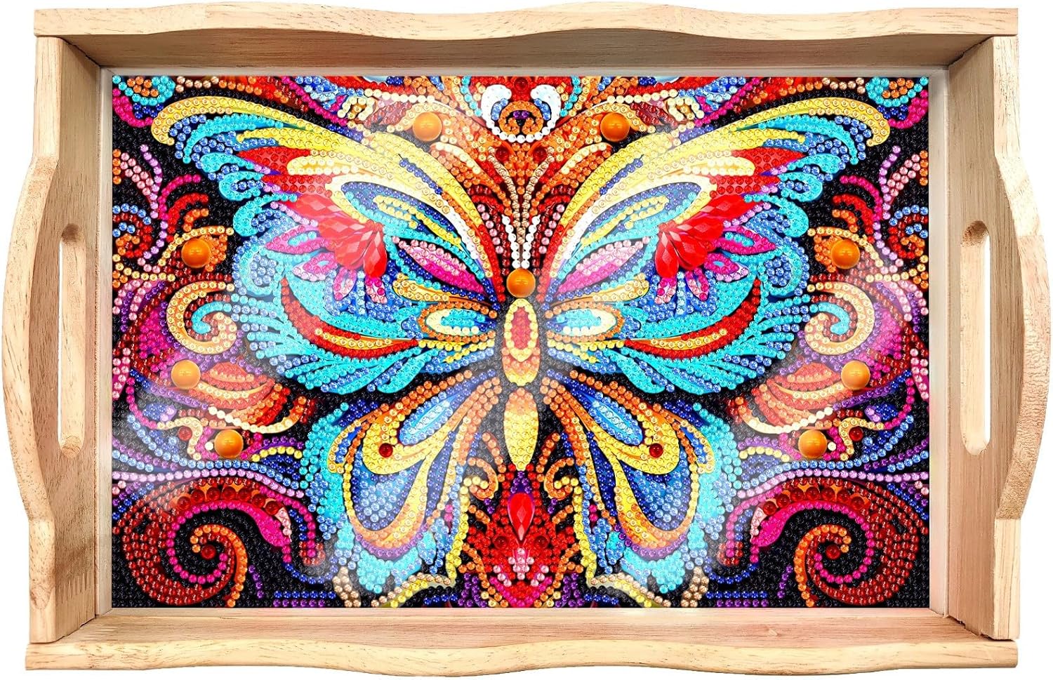 Generic 2Pcs DIY Diamond Serving Tray Rectangular Breakfast Tray with Handles Handmade Diamond Art Painting Wooden Tray Dinner Plate for Coffee Living Room Home Organizer-Mandala