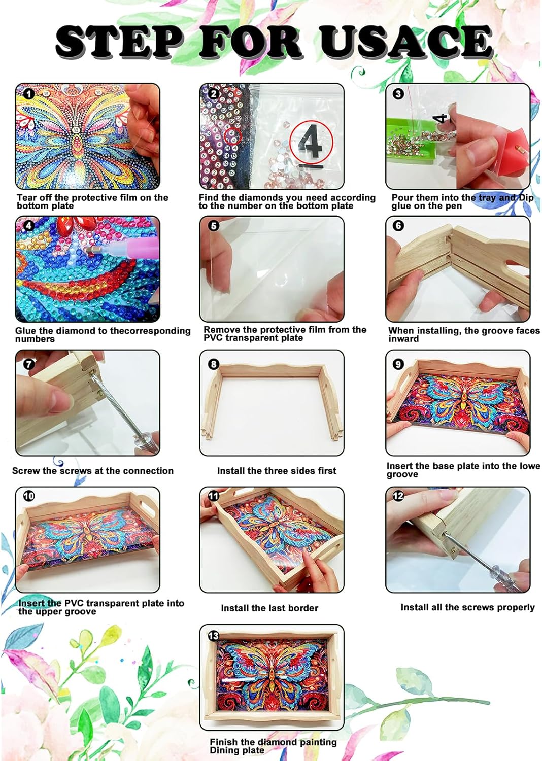 • 【Creative combination】: The creative combination of diamond art painting and tray brings exquisite diamond art painting decoration, and the inlaid rhinestones reflect the sparkling luster under the light.