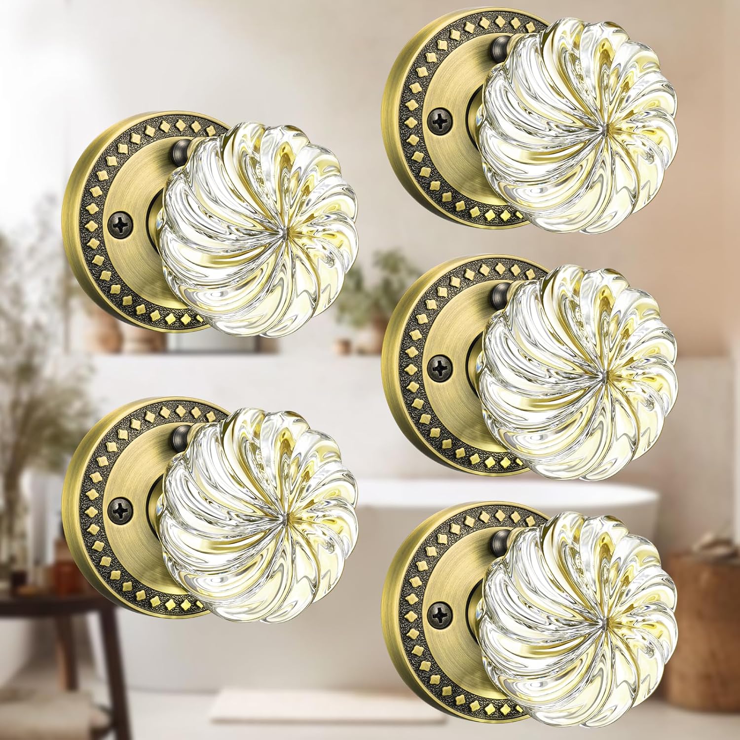 • Durability & Classic: Built to last for years, Mensarix crystal doorknob features a solid zinc alloy baseplate ensuring structural strength. Finished in a sophisticated antique brass , the brushed antique brass door knobs interior withstands daily wear beautifully, offering lasting performance and a premium, classic aesthetic for your interior doors
