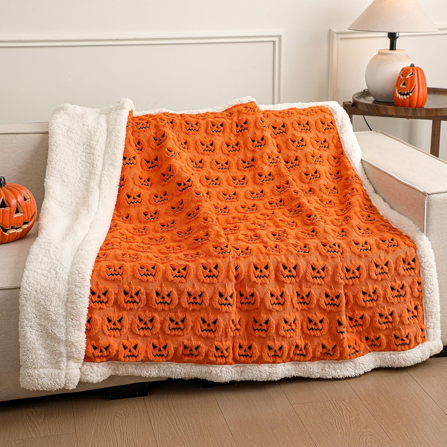 Features: The exceptional softness of both sides of the blanket provides a snuggling experience, whether you're reading a book, watching TV, or simply taking a nap. It's like being wrapped in a cloud of warmth and comfort Its spooky yet cute design appeals to people. It's a good way to add a touch of Halloween fun to your home decor while keeping everyone warm and comfortable. Specifications: Material: artificial wool Color: white, black Size: about 50 x 60 inch Package includes: 1 x Halloween sherpa throw blanket Notes: Manual measurement, please allow slight errors on size. The color may exist a slight difference due to different screen displays