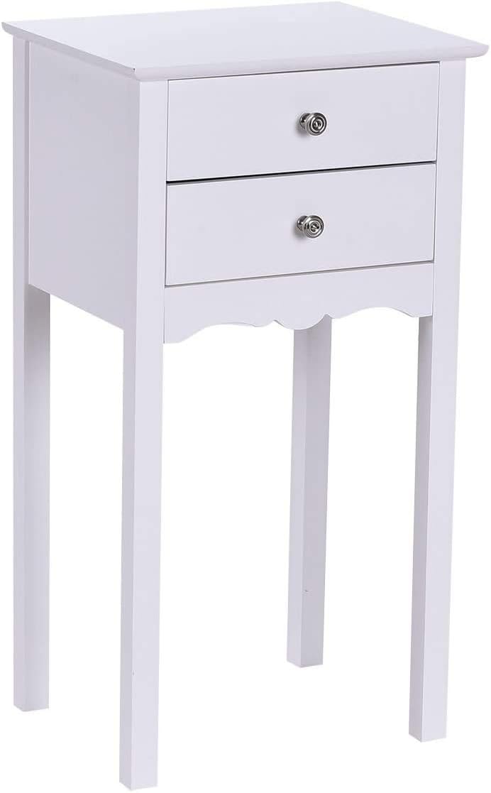 Description:This side table is a perfect home furniture for your living room or bedroom.The non-toxic MDF material ensures safety and quality. Besides, the exquisite paint make the side end table stylish and charming, which would definitely make your space attractive. What is more, the compact design saves a lot of space. Further, its two slide-out drawers provide ample space for you to place small items. And the two drawers are also easy to access. With this nightstand, your space would be clean and tidy.So what are you waiting for? Just take it home now.Features:Compact design makes it easy to storeModern style make your space attractiveNon-toxic MDF ensure the quality and safetyDetailed assembly steps offers much convenienceTwo slide-out drawers provide ample space for small itemsHigh-quality sliding roller enables drawers running smoothlyThe beautiful paint can match well with your home decoration styleSpecification:Color: Black/ WhiteMaterial: MDFOverall Dimensions: 16”× 13”× 30" (L x W x H)Net Weight: 17LbsPackage Include:1×Side Table
