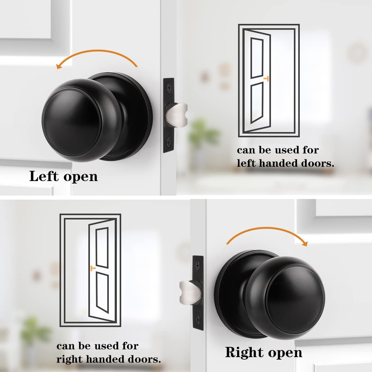 • Universal handing: fits both right handed and left handed doors; Package Includes: Selected Door Knobs, Screws, Installation Instructions and all the mounting hardware needed. Easily to Install.