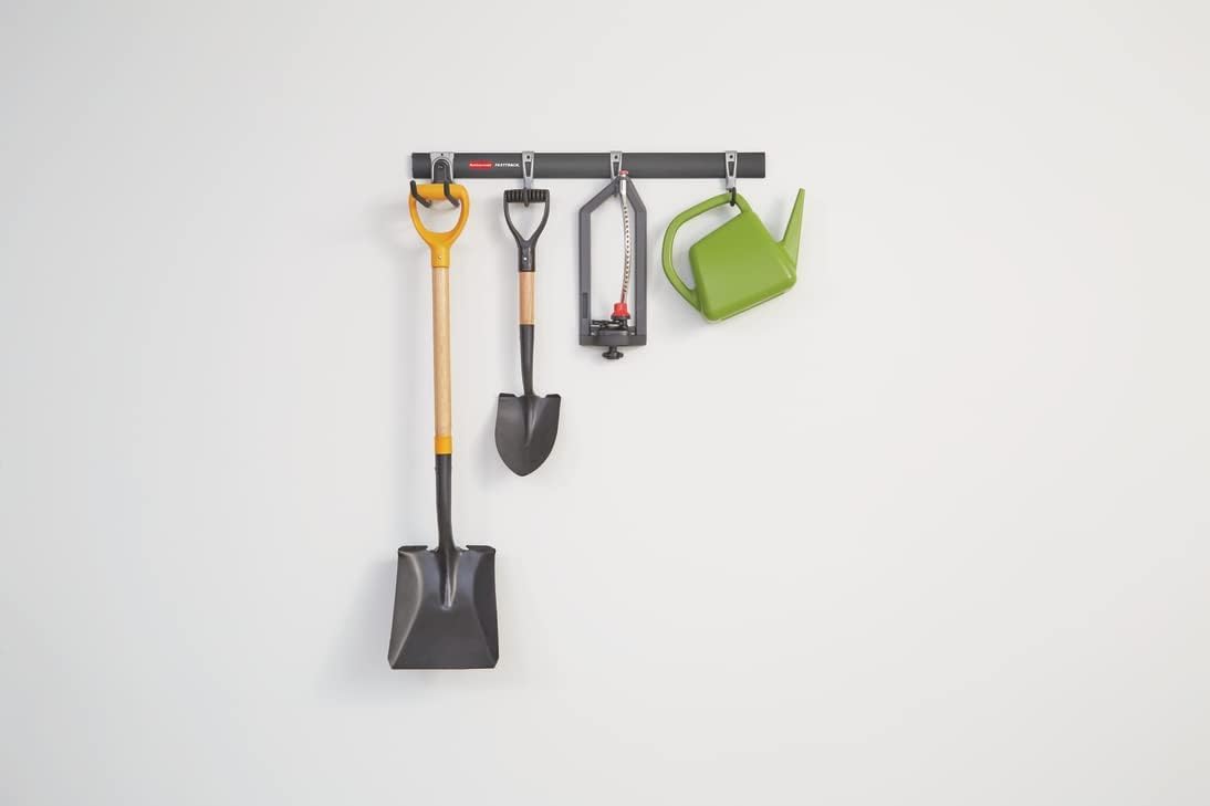 The Rubbermaid FastTrack 5-Piece All-in-One Kit is a fantastic solution for organizing your garage. This kit helps you clear the floor by getting items up on the wall, creating more space for work and play. It includes a 32-inch hanging rail, a handle hook, two scoop hooks, and a multi-purpose hook. The FastTrack system is quick and easy to install, with all necessary hardware included. The pre-drilled holes on the rail are designed to fit 16-inch or 24-inch studs, ensuring a sturdy and secure installation.