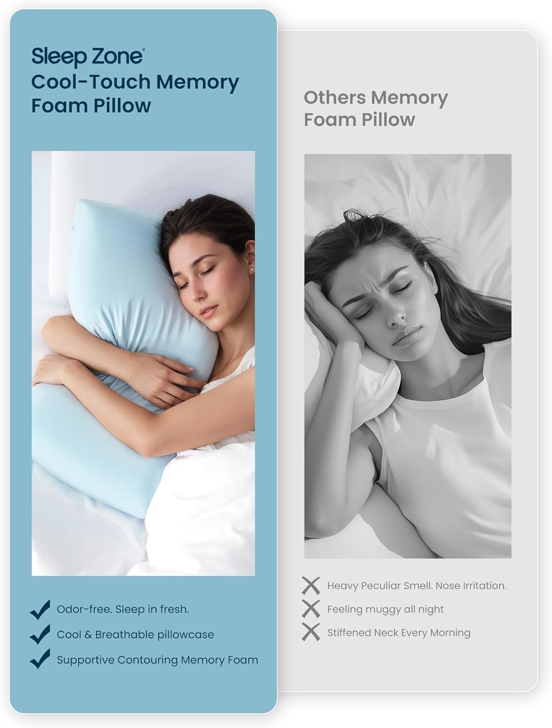• [ Completely Odourless&Odor-Free ] :Our memory foam pillow is made using advanced CO2 foaming technology, ensuring it's completely odor-free and environmentally friendly. The innovative process eliminates any off-gassing, giving you a fresh, clean sleep experience from the first use. Enjoy ultimate comfort and peace of mind knowing your pillow is both eco-conscious and free of harmful chemicals.