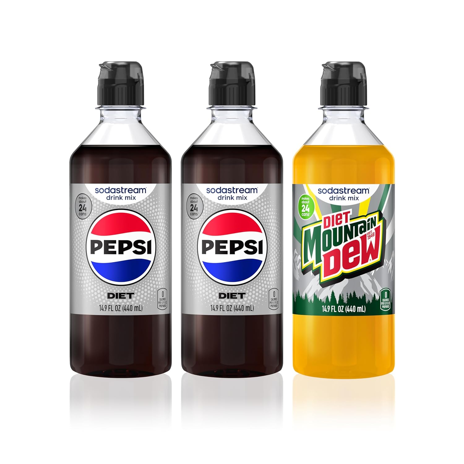 Discover the fizz-tastic world of SodaStream with the Variety Beverage Mix! Perfect for those who love crafting their own soda, this mix lets you transform your SodaStream sparkling water into the iconic taste of Diet Pepsi in mere seconds. Each 14.9 Fl Oz bottle in this pack of four creates approximately 2-2.5 gallons of delicious, sugar-free cola, giving you a grand total of about 9.5 Gallons of refreshing fun.