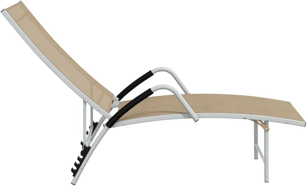 This sun lounger combines style and functionality, adding an excellent seating addition to your garden, patio, pool deck or other outdoor living space.Constructed from a sturdy aluminum frame, the sunbed is durable and stable. The backrest is adjustable from sitting to lying, which offers you the utmost comfort. This day bed is extra high and easy to stand up. Note: In order to extend the life of your outdoor furniture, we recommend you to clean it regularly and do not leave it outdoors without protection unnecessarily.Clean: Use a mild soap solution.Storing: If possible, store in a cool, dry place indoors. If the product is stored outdoors, protect it with a waterproof cover. Wipe and dry the excess water or snow from flat surfaces after a rain or snowfall. Allow sufficient air circulation to avoid moisture-related damage.Color: TaupeMaterial: Textilene, aluminum with silver powder-coating finishDimensions: (67"-76") x 24" x (38"-20.1") (L x W x H)AdjustableEasy to stand upAssembly required: Yes