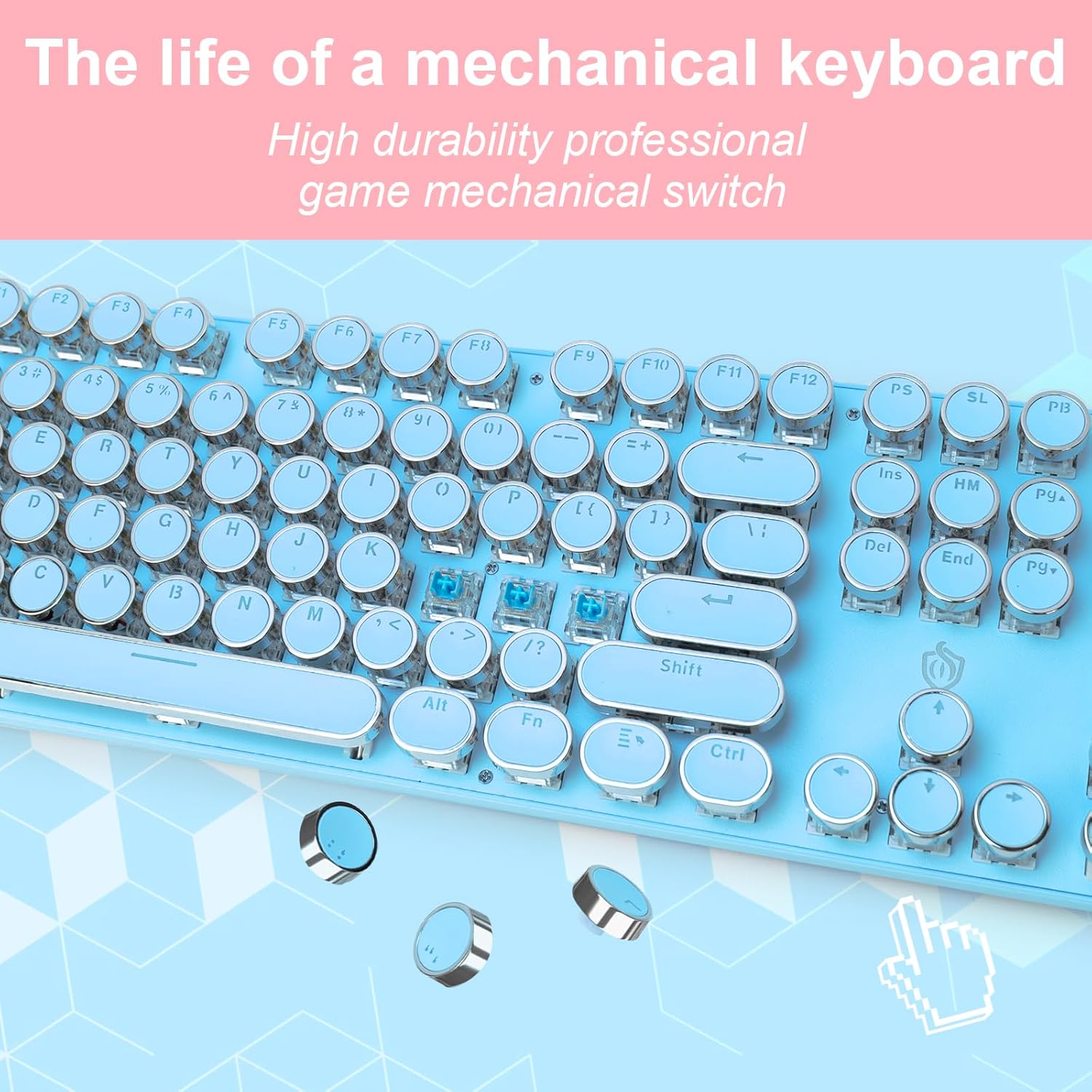• 【Retro Typewriter Style Keyboard】: Merges the charm of vintage typewriters with advanced mechanical blue switches for medium resistance, clear click sounds, and tactile feedback, offering a unique and comfortable typing experience.