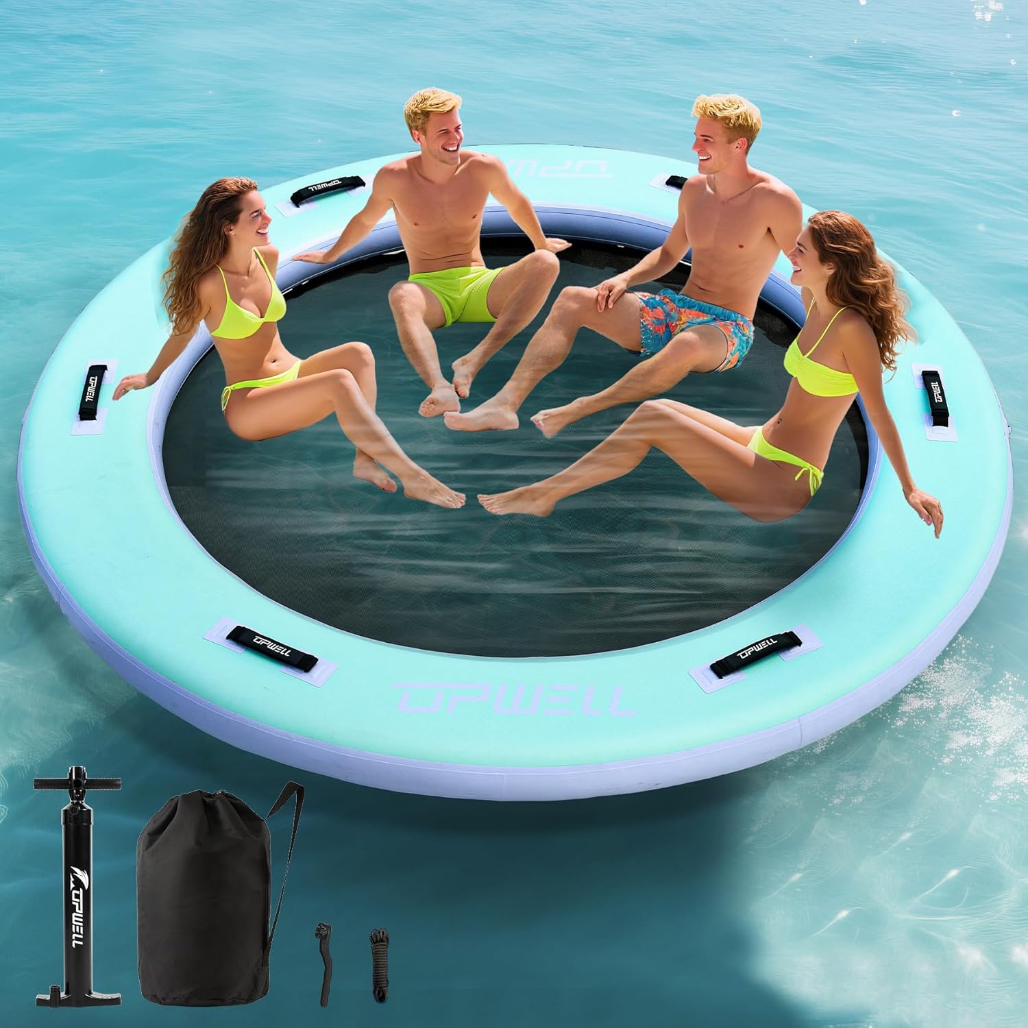 • Secure Connection System:Features heavy-duty grab ropes with rust-proof hooks for linking multiple floats. Two oversized handles offer stability when entering/exiting water.