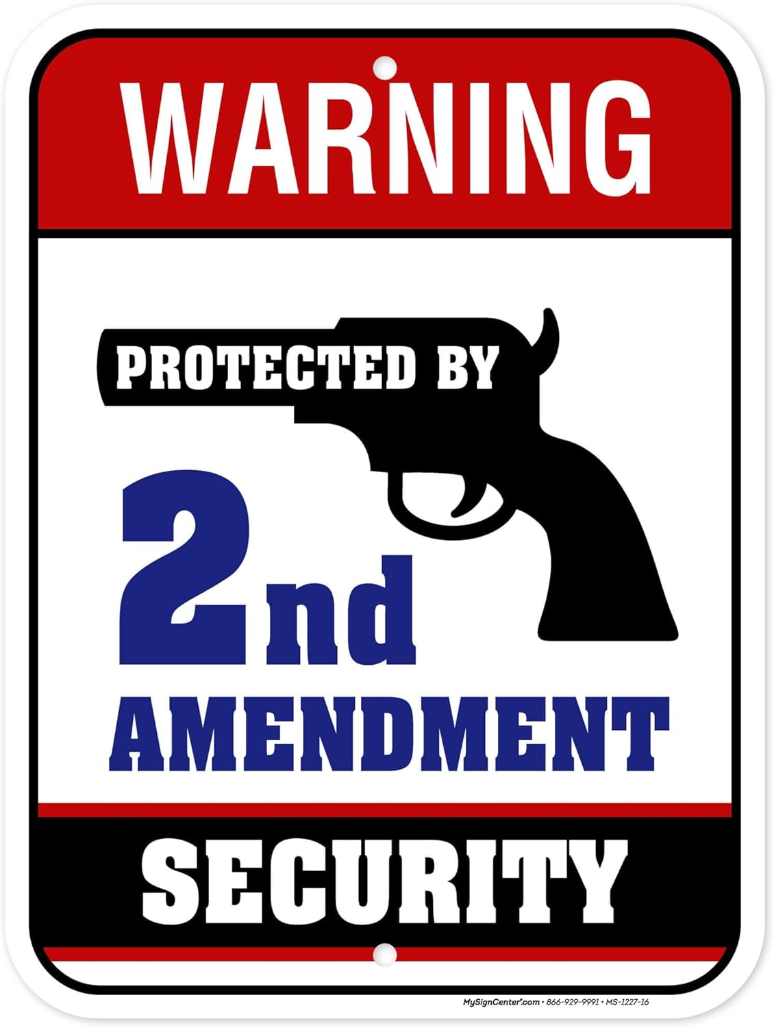 Warning Protected By 2nd Amendment Security Sign, 18"x24" Polyethylene, Indoor/Outdoor Use, USA MADE By My Sign Center