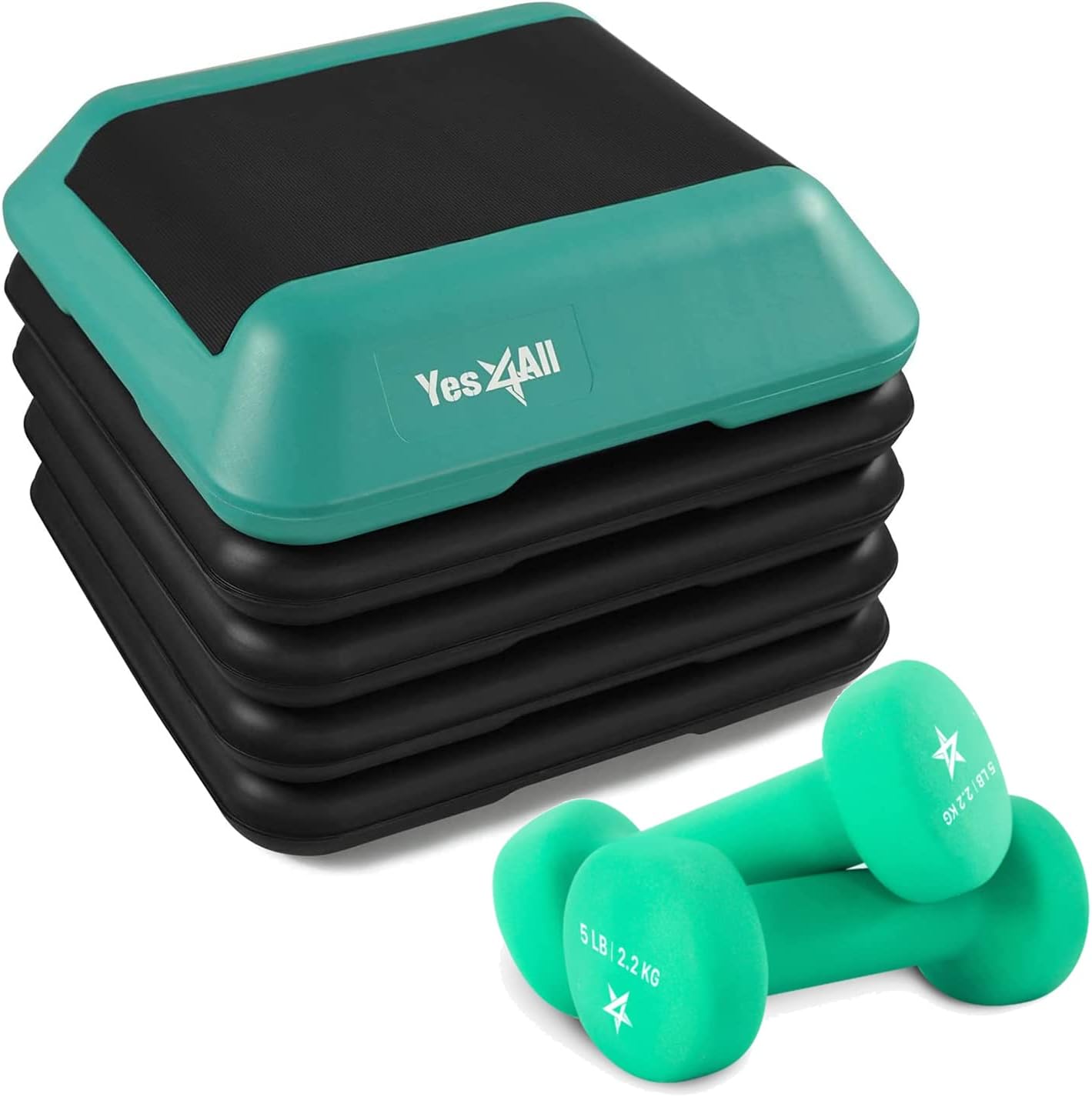 Yes4All High Arobic Step Platform & Stackable Risers - Adjustable 4"/6"/8"/10"/12" Height - Choose Full Step Platform Set or 2-Pack Stackable Risers, Customize for Cardio & Aerobic Exercise